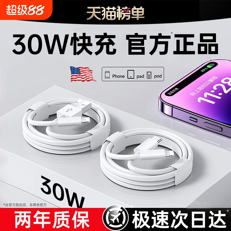 【30W快充】适用苹果充电线14promax数据线iPhone13/12pd正17闪充11手机加长2米ipad品7plus单头原8电装6