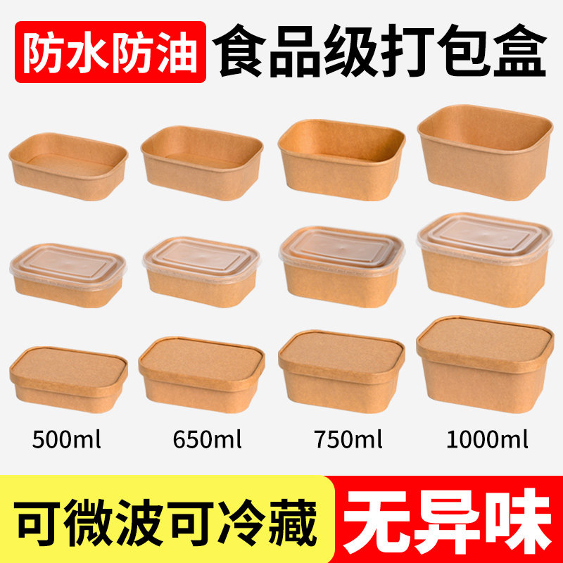 一次性餐盒饭盒牛皮纸方形食品级外卖打包盒加厚野餐快餐水果露营