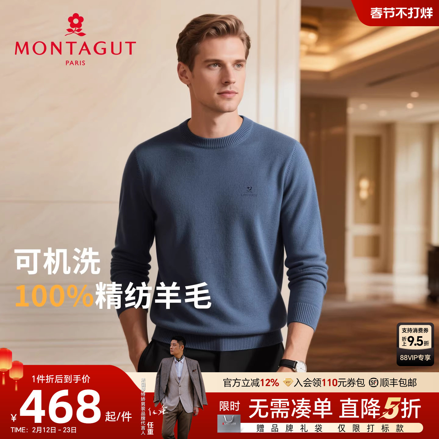 [可机洗精纺纯羊毛]梦特娇男士100%羊毛衫冬季圆领针织毛衣加厚J