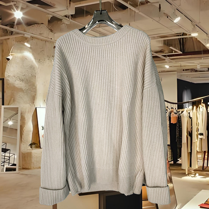 奢美高端 重磅花纱羊毛羊绒拉绒 宽松软糯加厚卷边圆领针织衫毛衣