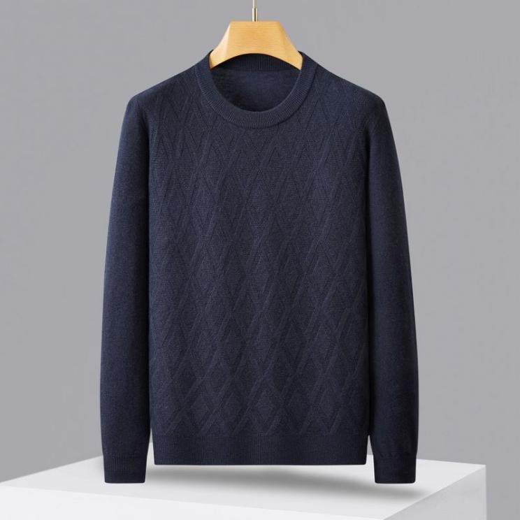 新款100%纯羊毛衫男士圆领毛衣秋冬季加厚保暖中年针织打底羊绒衫