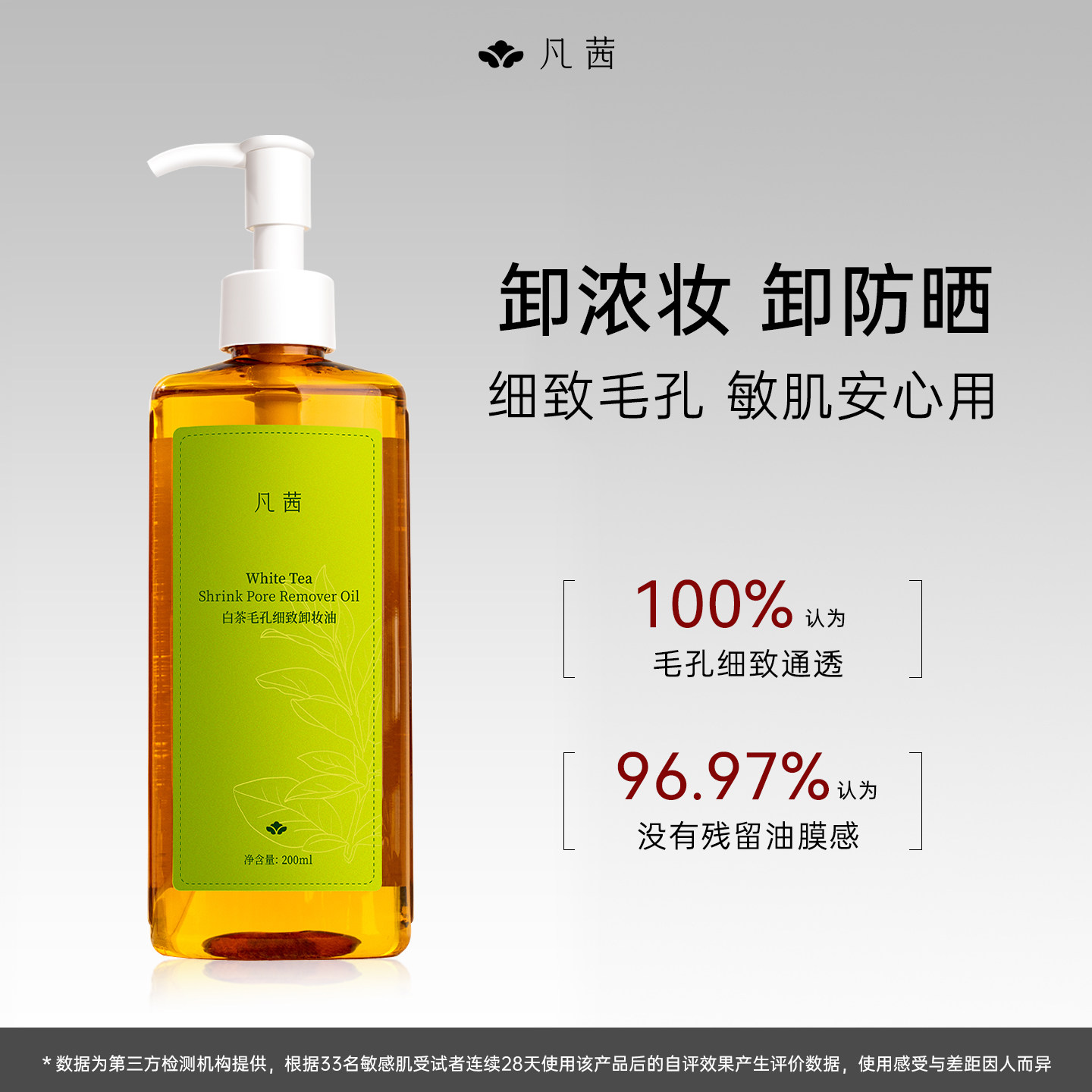 凡茜白茶毛孔细致卸妆油快卸妆不残留温和清洁脸部200ml*3瓶正品