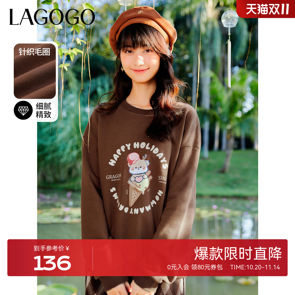 LAGOGO美拉德圆领卡通印花卫衣女拉谷谷春季新款宽松可爱休闲上衣
