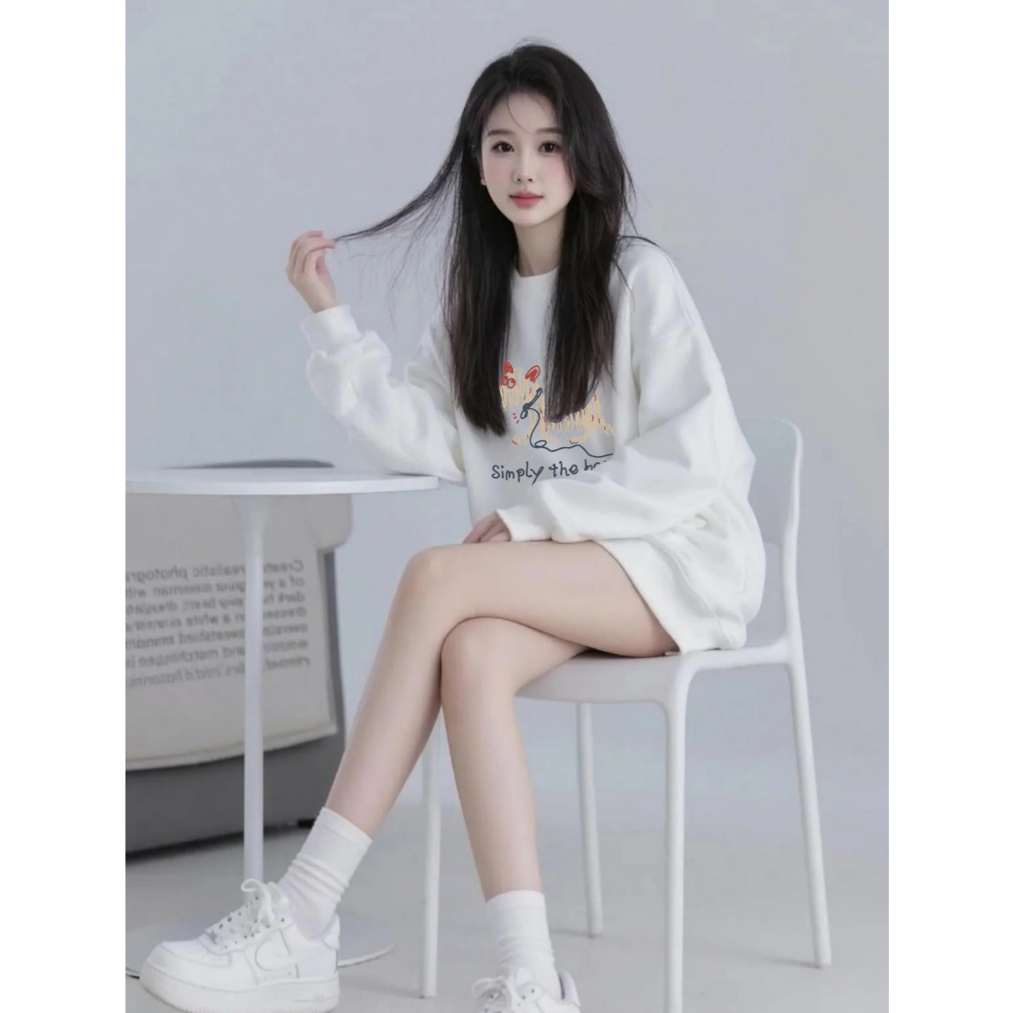 白色时尚大版减龄卡通印花卫衣女小众潮流设计感宽松显瘦上衣外套