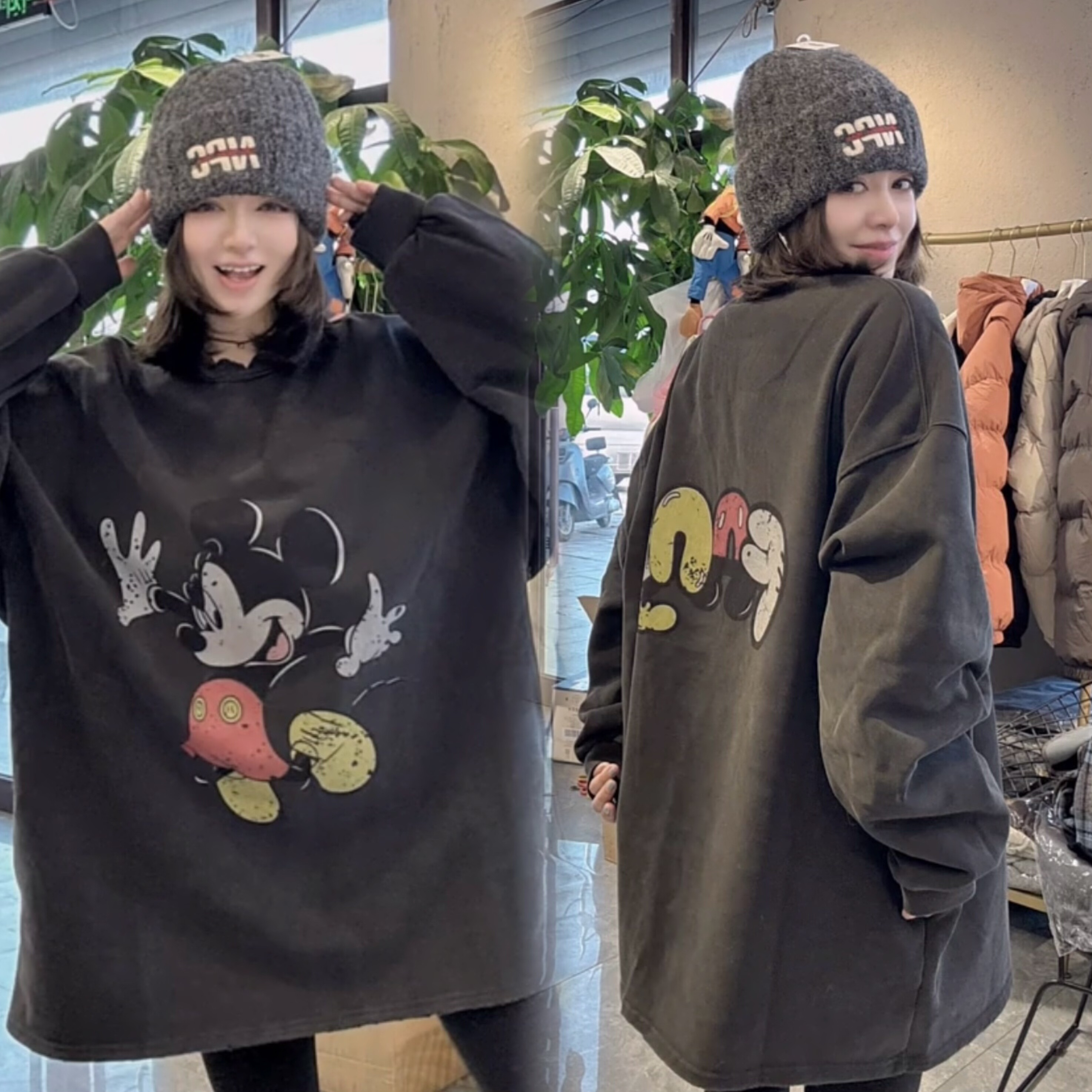 - 宽松 加绒 卫衣 女