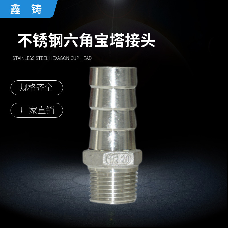 304不锈钢内丝宝塔接头4分1寸六角皮管竹节头倒刺软水管宝塔防爆