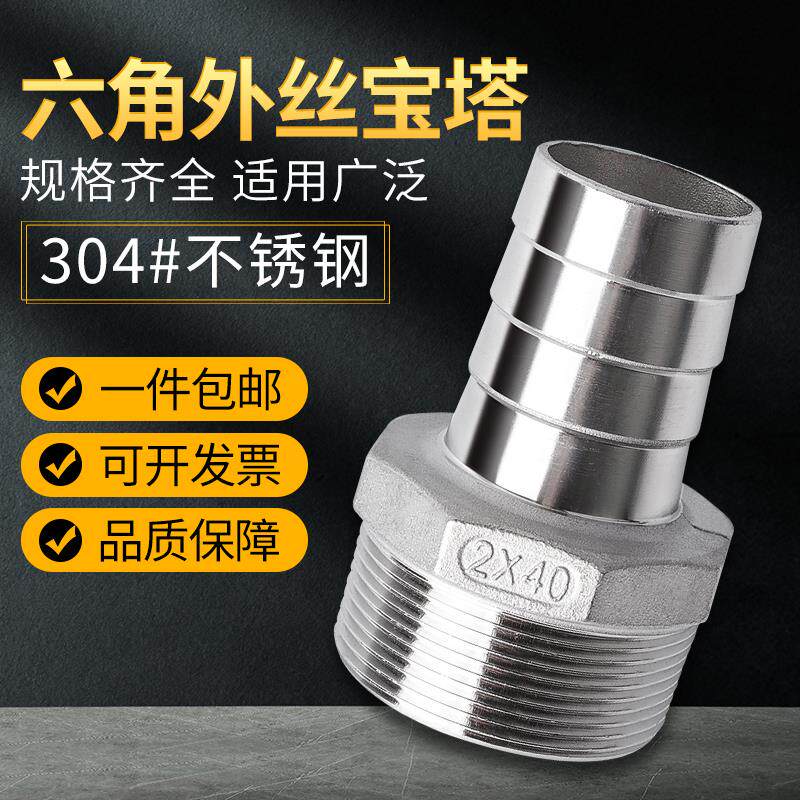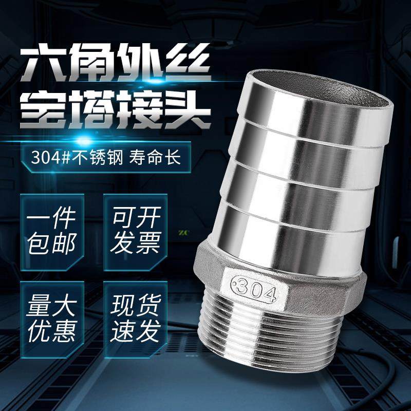 宝塔接头外丝软管倒刺配件水管四分竹节304不锈钢4分皮管6分1寸