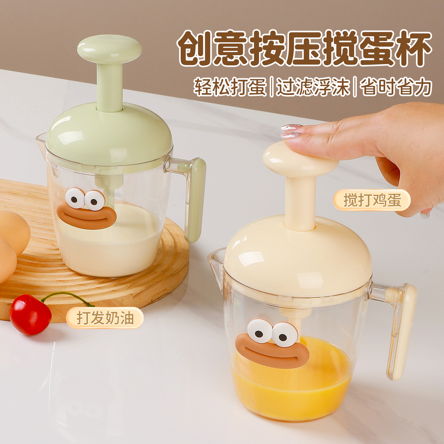 按压式打蛋杯家用手动搅蛋器奶油蛋糕搅拌器多功能搅蛋杯搅拌神器