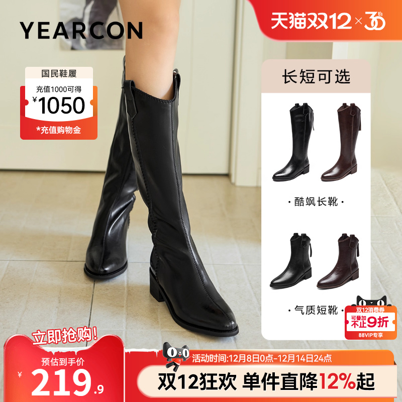 意尔康女鞋2025冬季法式长靴骑士靴长筒不过膝粗跟高筒靴迪木尔风