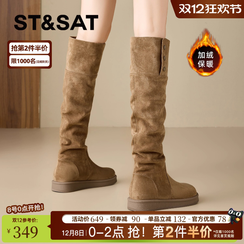 星期六不过膝长筒靴女2025新款冬季美拉德长靴子女复古堆堆骑士靴