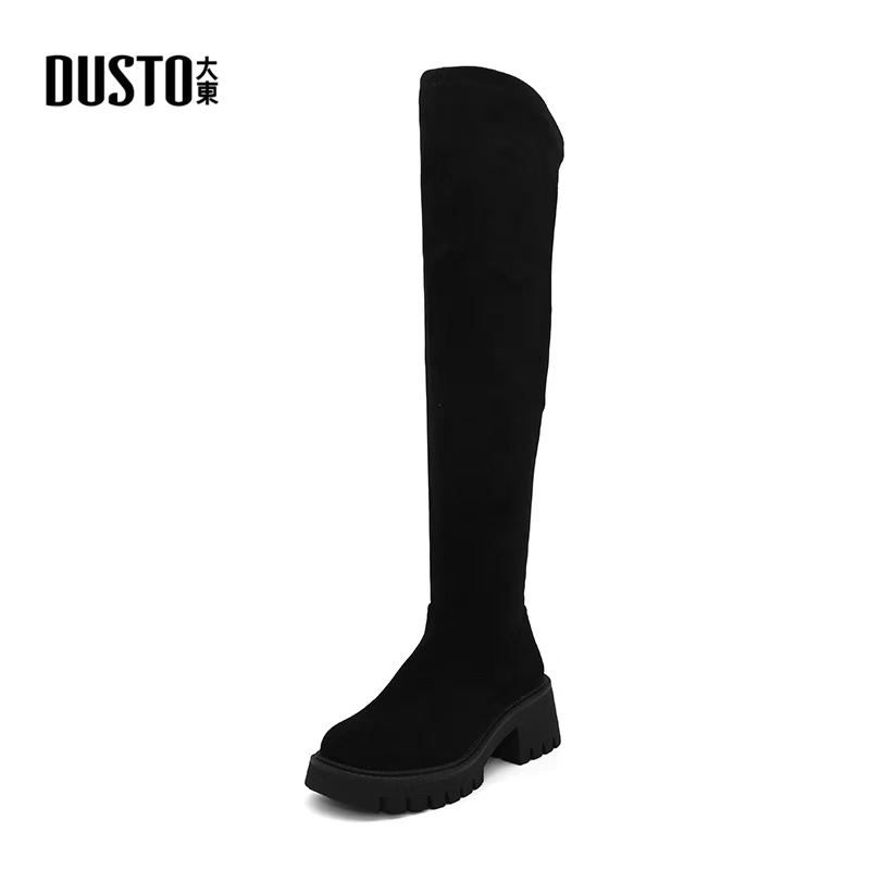 大东过膝靴2025冬季新款优雅时尚舒适圆头长靴粗跟高跟女鞋D1153