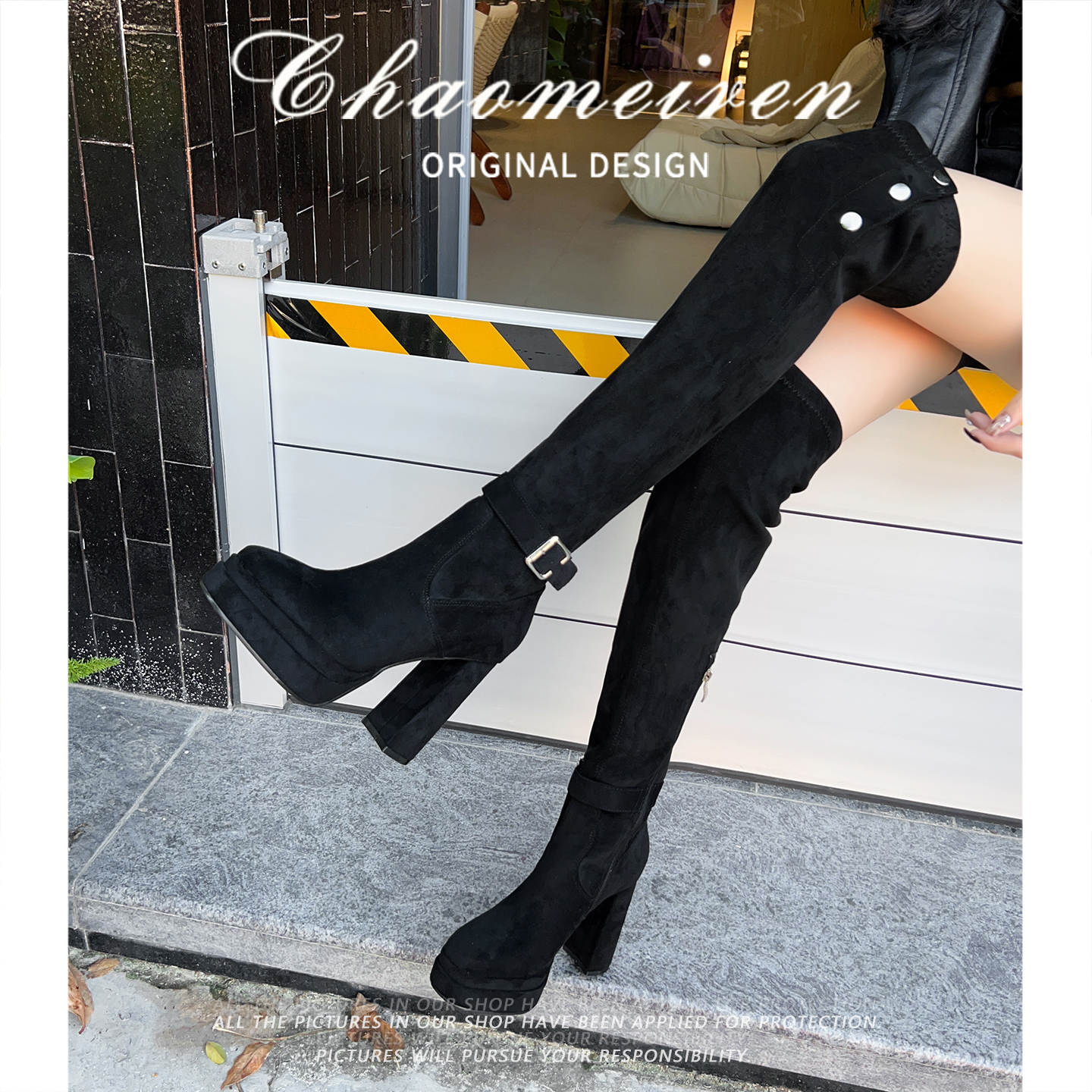 超高跟过膝长靴女2022新款粗跟显瘦高筒弹力靴防水台长筒靴子大码