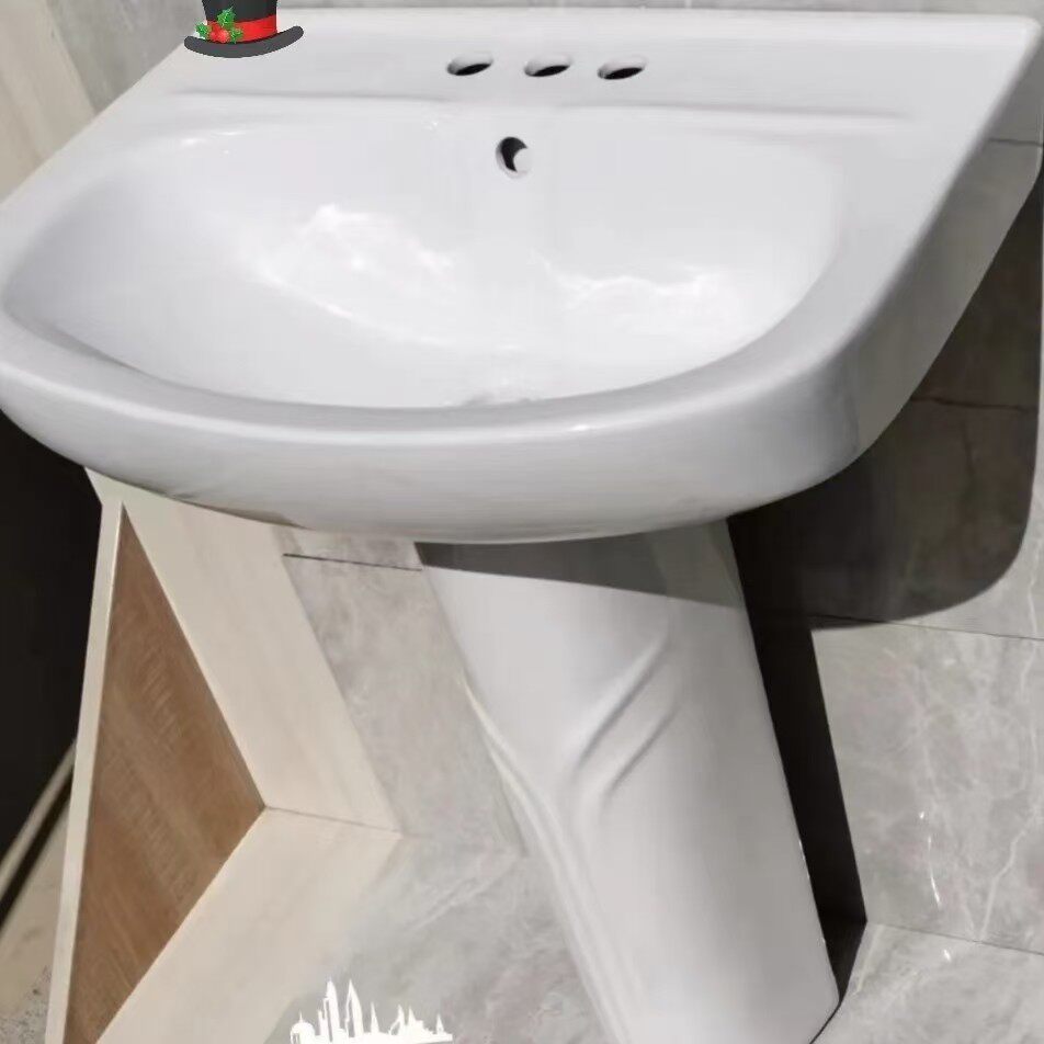 三孔立柱盆陶瓷立柱式洗脸盆厕所洗手盆一体式卫生间阳台落地台盆