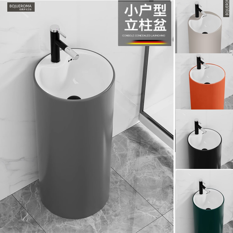 陶瓷立柱盆一体落地式洗脸盆卫生间立柱式洗手盆彩色小户型洗手台