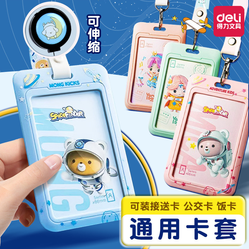 得力卡套公交卡证件保护套带挂绳学生校园饭卡工作证透明卡膜工牌厂牌挂脖硬卡包防丢神器胸牌胸卡伸缩