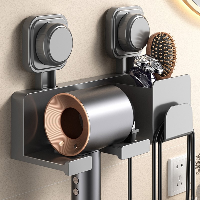枪灰吹风机置物架浴室电吹风收纳挂架免打孔卫生间壁挂风筒支架子