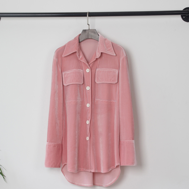 复古港味宽松大版翻领中长款金丝绒衬衫女 春秋新款洋气大码衬衣
