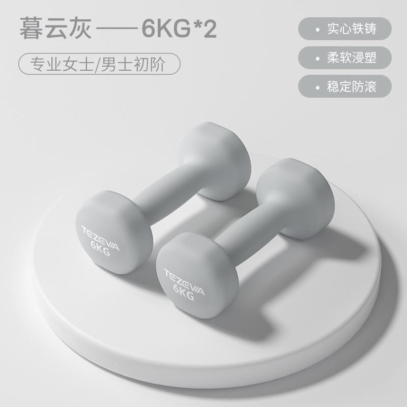 tezewa圆头铸铁家用健身训练实心浸塑哑铃哑铃女生练臂肌小哑铃