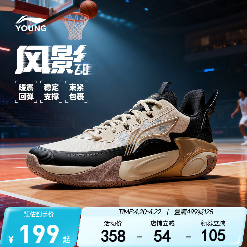 李宁风影2.0专业实战篮球鞋轻便软底男童鞋女青少年中大童运动鞋