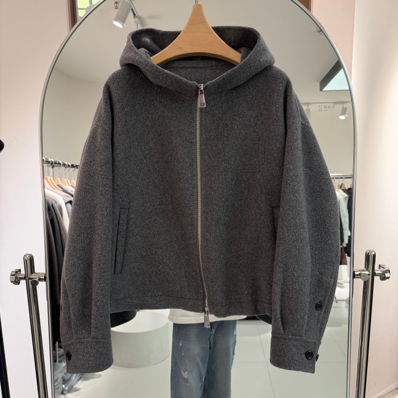 欧洲站2025年秋冬新款流行女装短款双面羊绒大衣连帽领休闲款韩版
