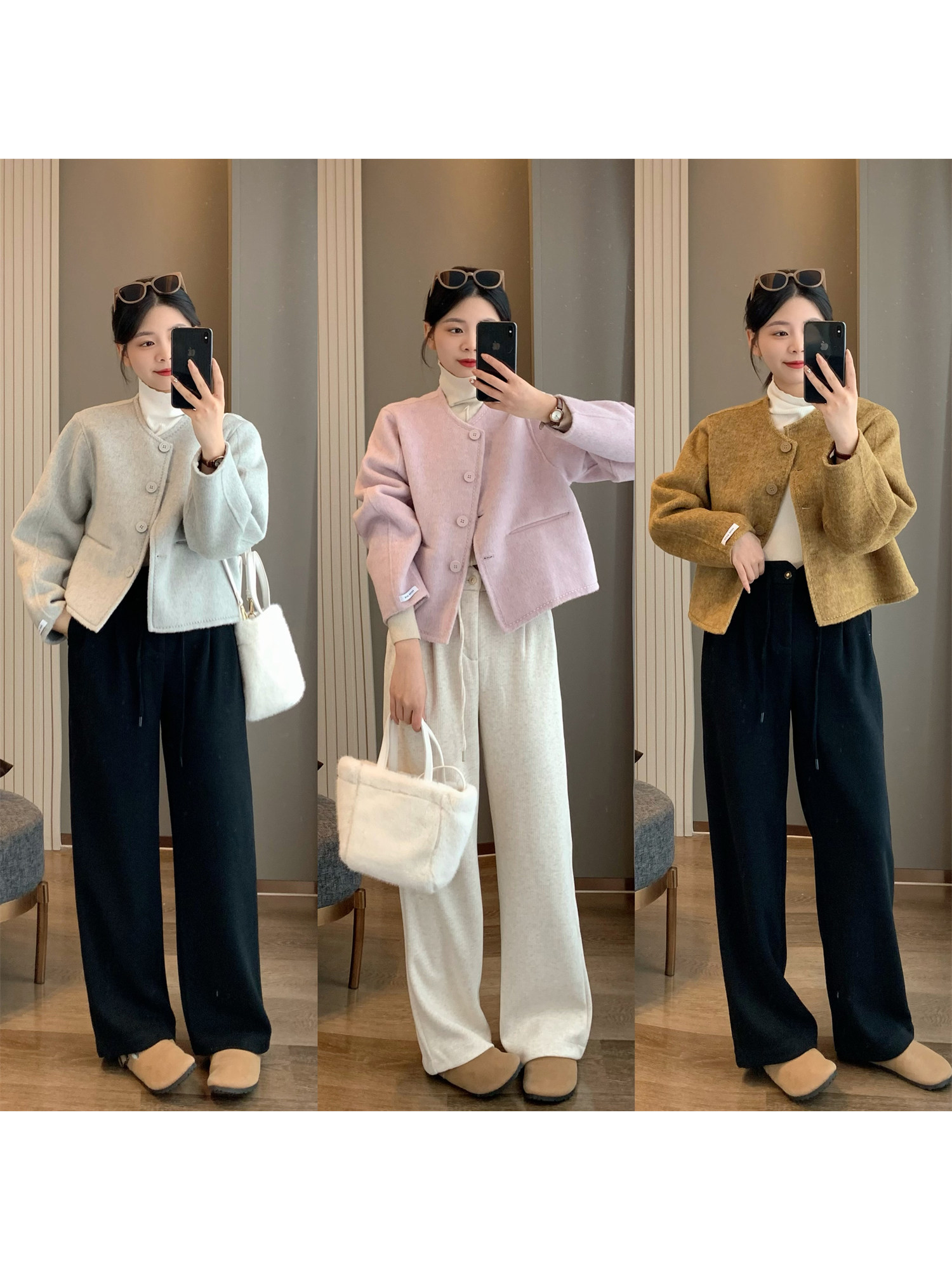 - 短款毛呢外套女冬装