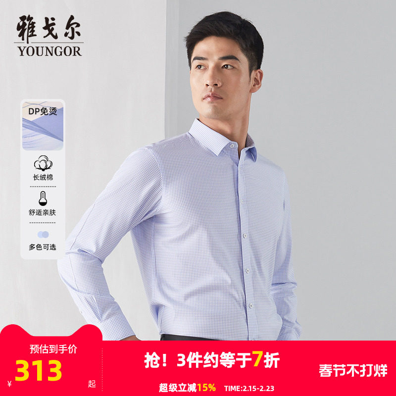 【绵羊毛免烫】雅戈尔官方春秋新品商务休闲通勤DP纯色长袖衬衫男