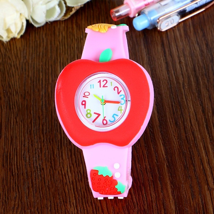 儿童手表防水硅胶软表带小女孩小学生可爱卡通苹果图案电子石英表