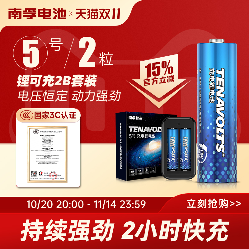 南孚锂可充可充电电池5号套装2粒1.5V恒压快充五号AA充电鼠标遥控游戏手柄风扇吸奶器无线话筒充电锂电池通用