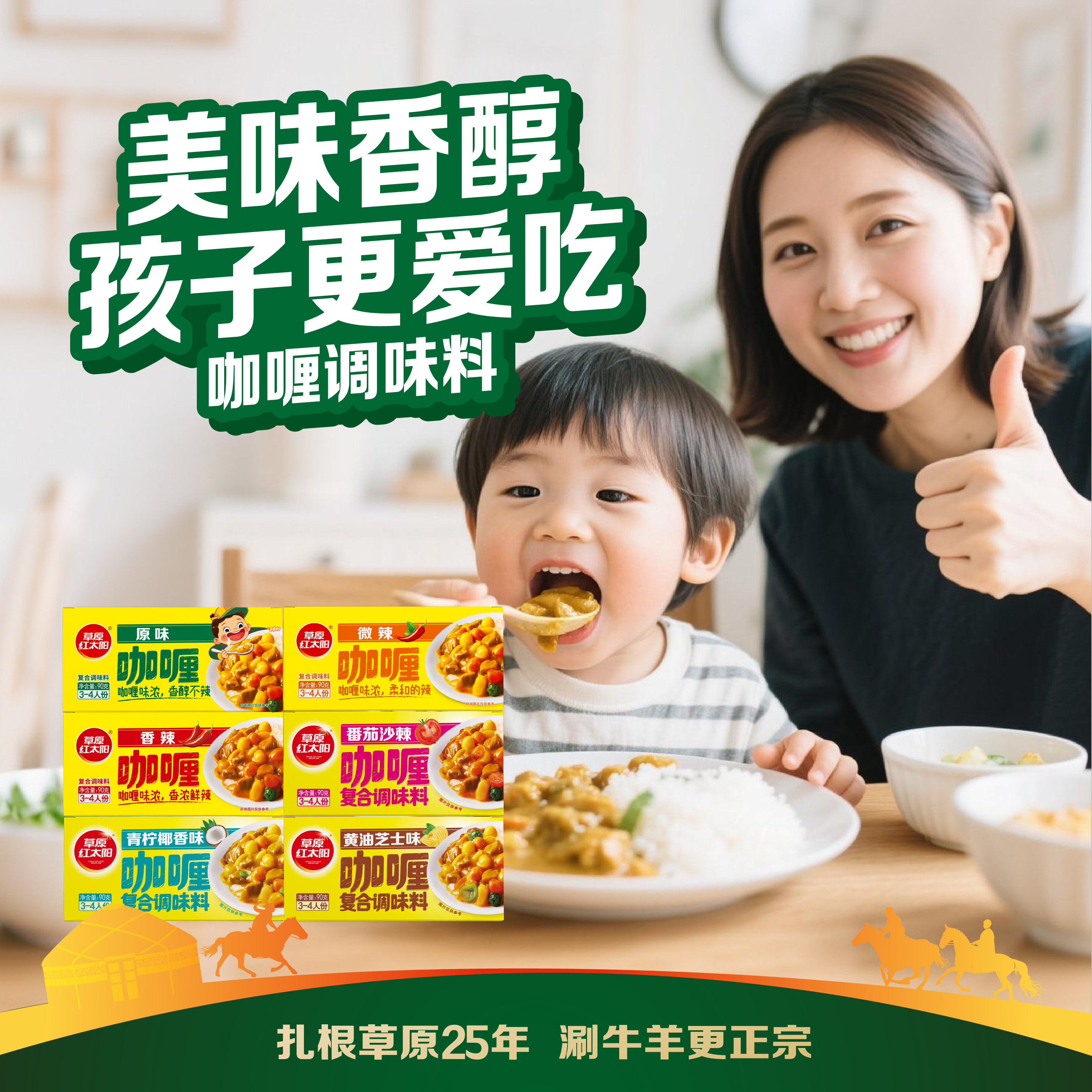 草原红太阳咖喱块调味料家用原味微辣咖喱鱼蛋酱料理儿童官方旗舰
