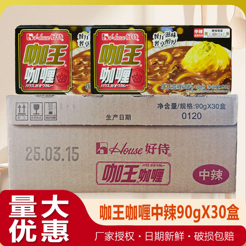 好侍咖王咖喱90g*30盒日式风味速食辣咖喱块牛腩鱼蛋鱼丸牛肉商用