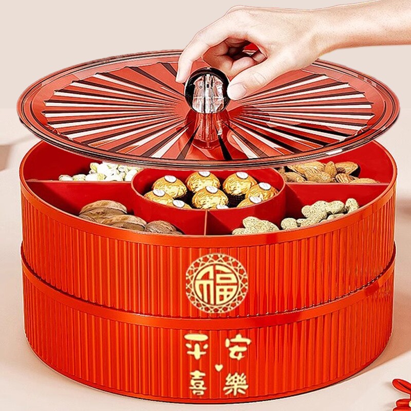 2025新款旋转果盘创意客厅干果瓜子盘结婚糖果盒过年家用零食收纳