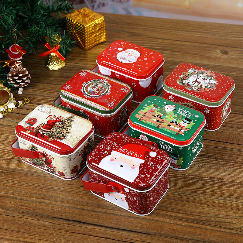 圣诞节铁盒迷你手提礼物包装盒饼干小糖果盒空盒喜糖盒子伴手礼品