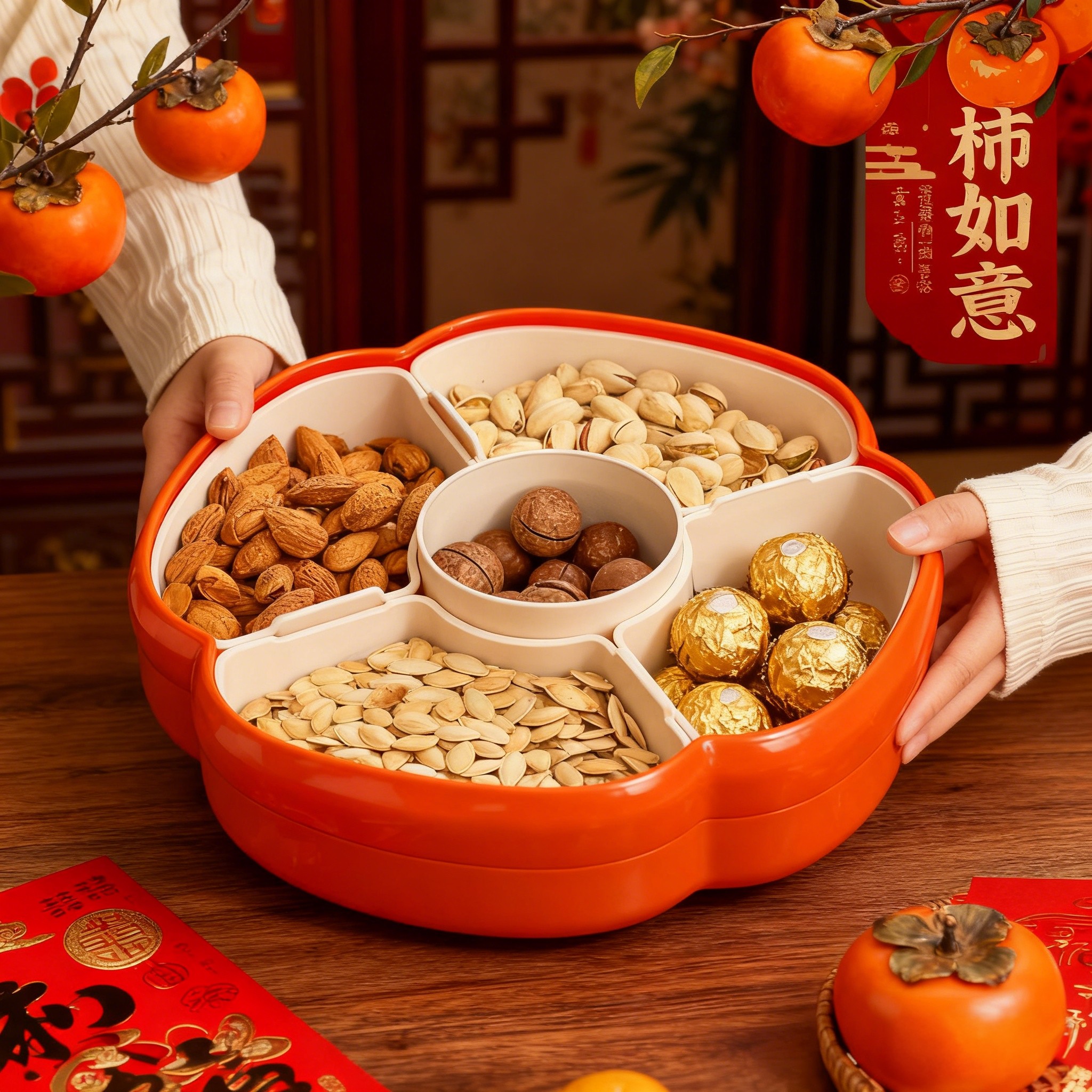 过年新年南瓜果盘家用客厅网红糖果盒零食水果盘子双层干果盘收纳