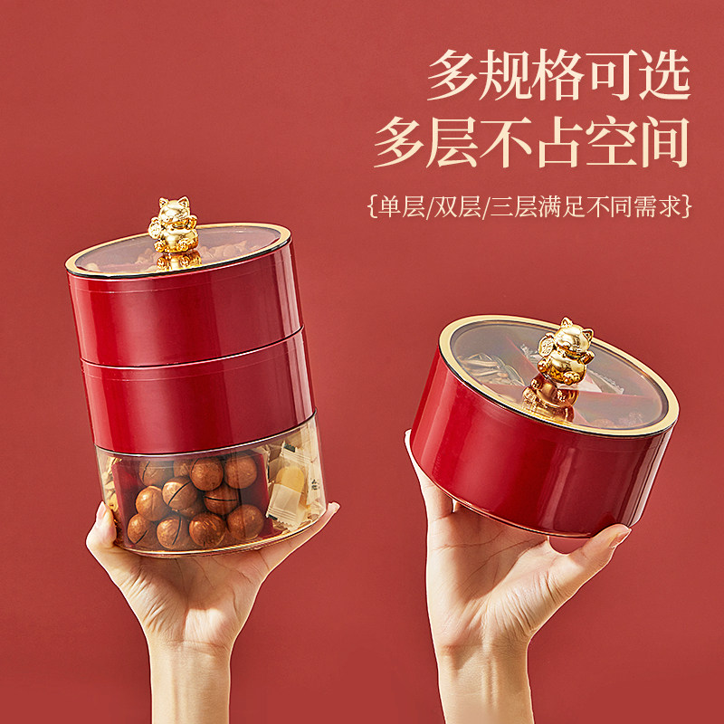 茶几客厅新年招财猫糖果盒网红高档多层过年坚果盘零食瓜子收纳盒