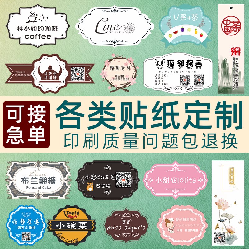 不干胶广告贴纸定制透明标签卷标设计不粘胶logo印刷奶茶防水商标