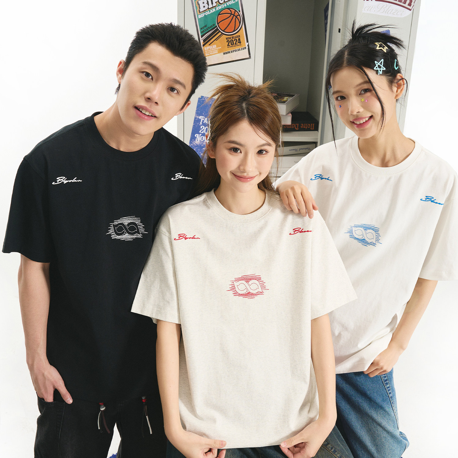 BIPOLAR断开字logo短袖设计感小众乱针绣重工美式T恤上衣情侣款