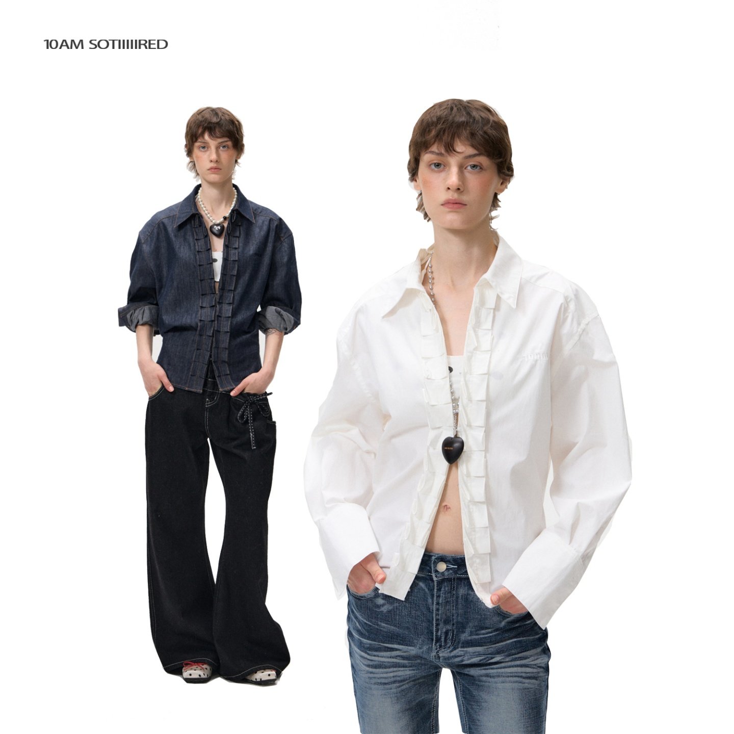 10AMsotiiiiired多种穿法收腰天丝原牛刺绣logo花边设计长袖衬衫