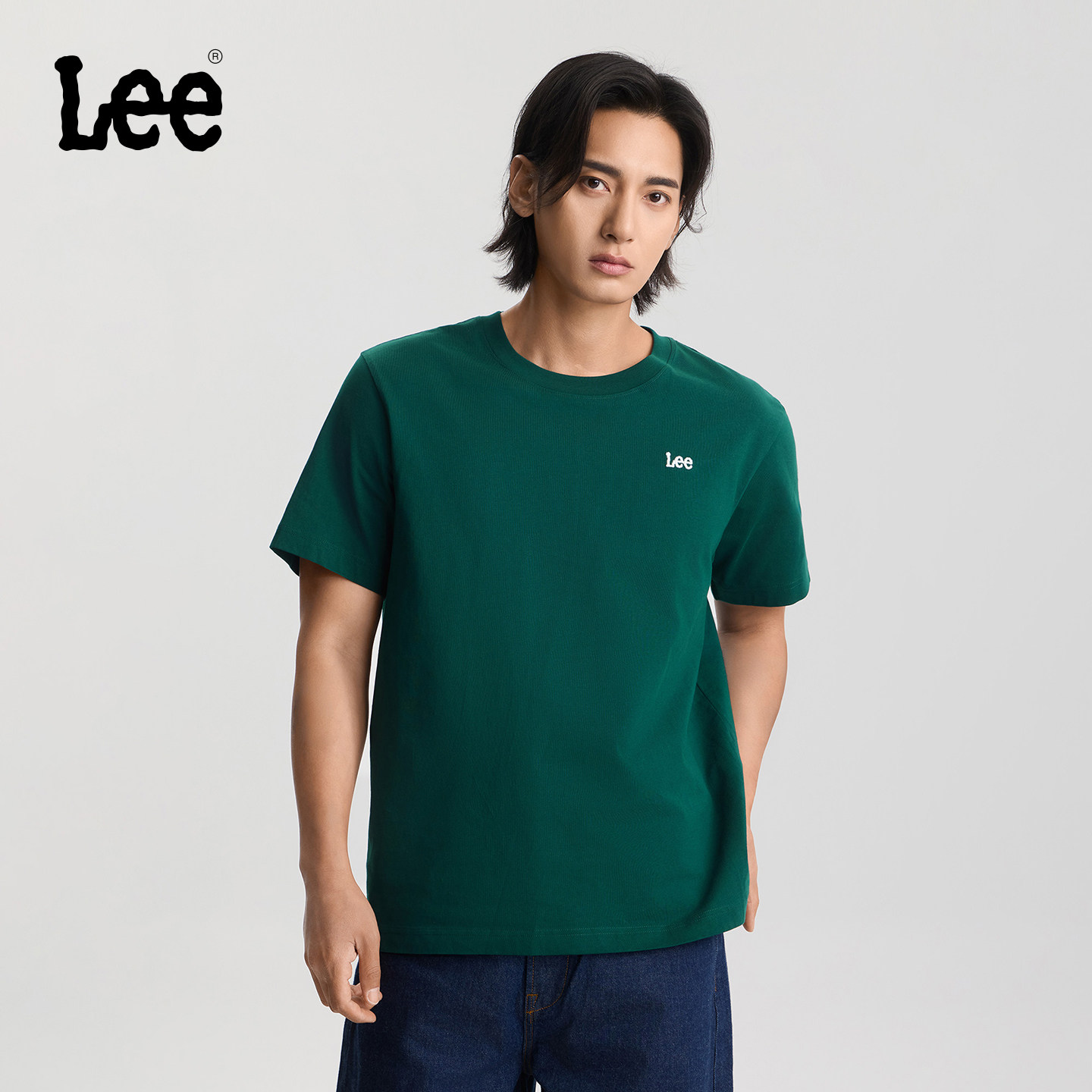 Lee商场同款26春夏新品舒适版圆领小刺绣Logo设计轻薄男短袖T恤潮