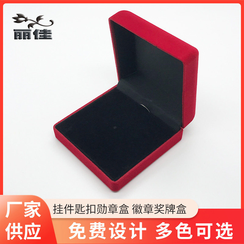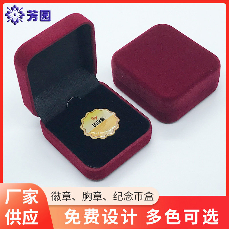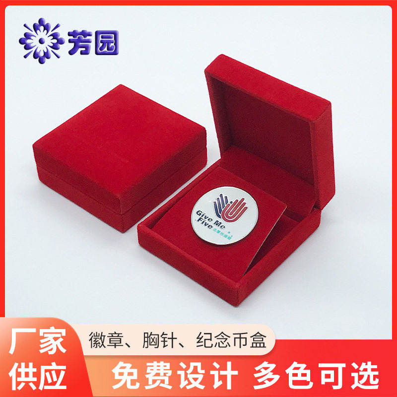 公司徽盒纪念章包装盒红蓝黑色绒布徽章盒功勋章胸针饰品收纳盒子
