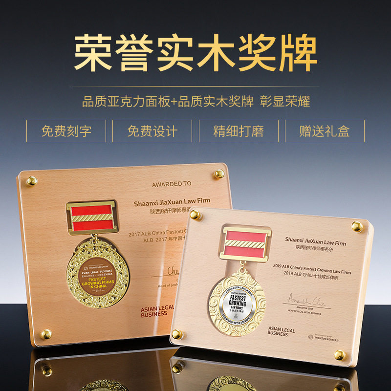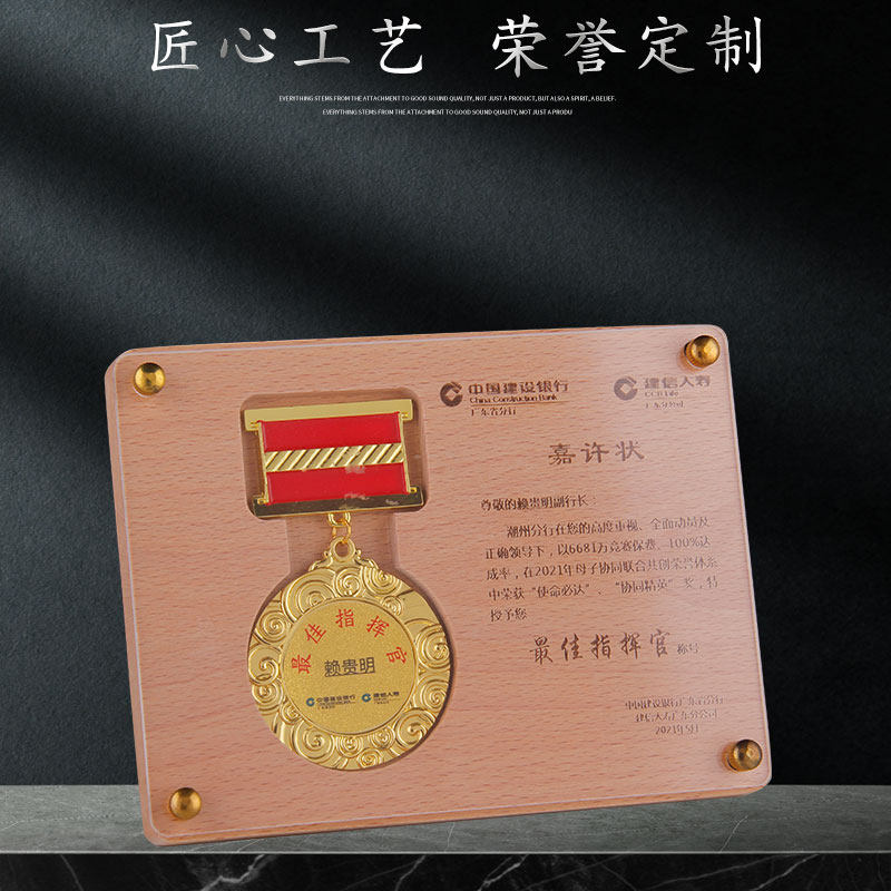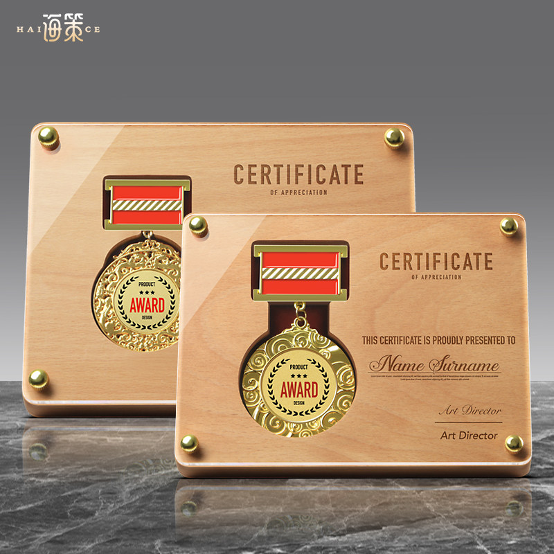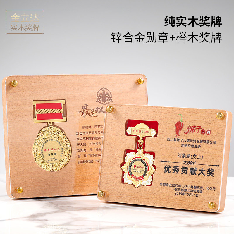 创意高档实木奖牌定制定做金属徽章荣誉功勋章木质授权牌牌匾证书