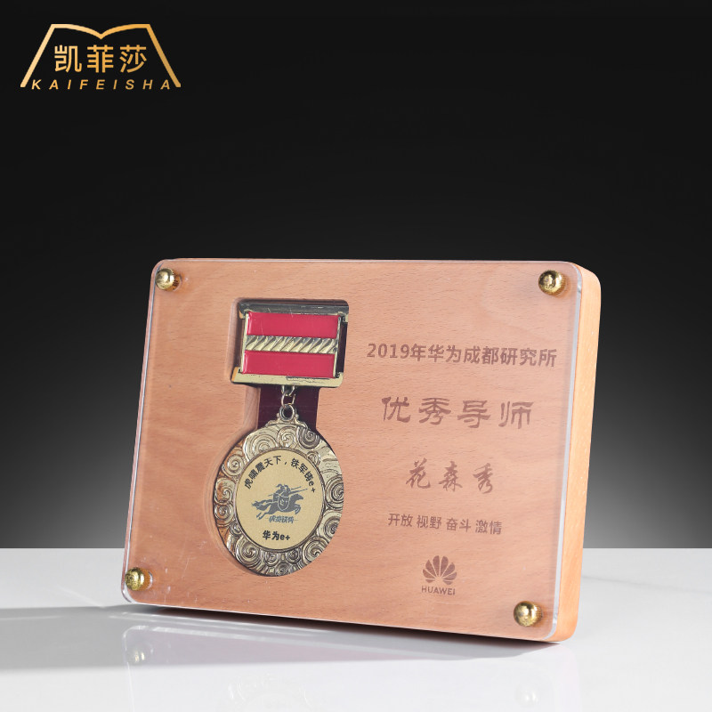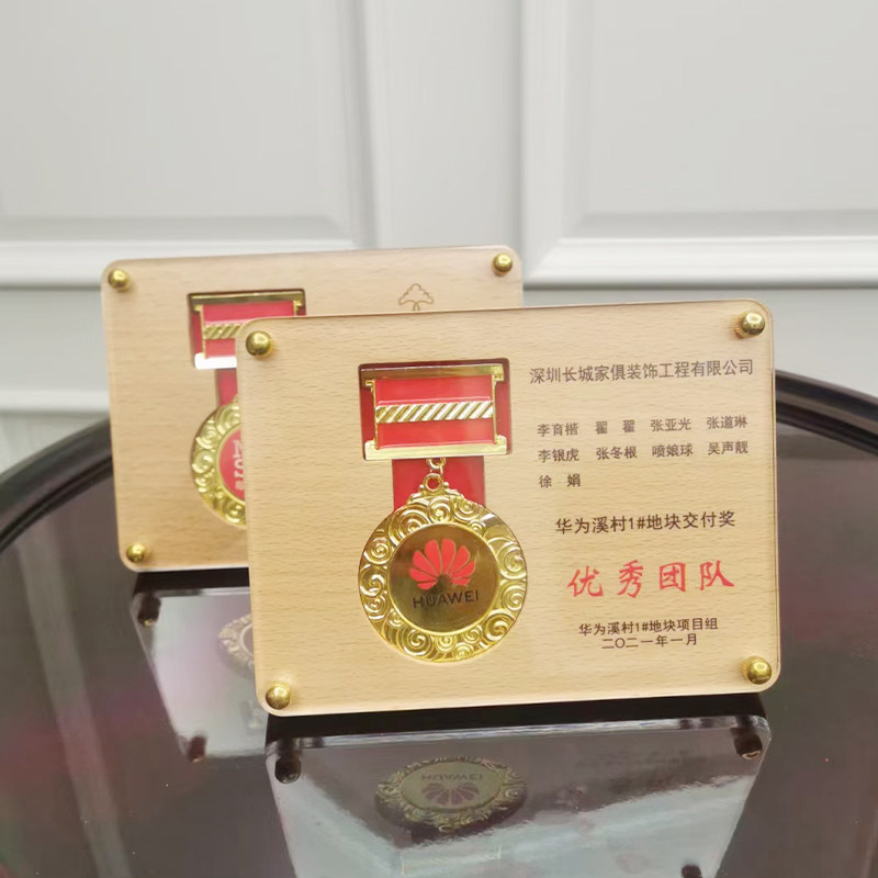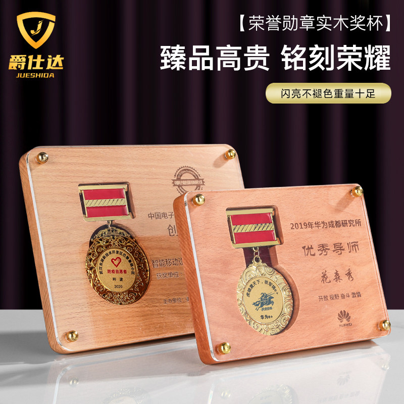 高档实木奖牌定制定做徽章功勋章荣誉授权牌木托证书制作优秀年会