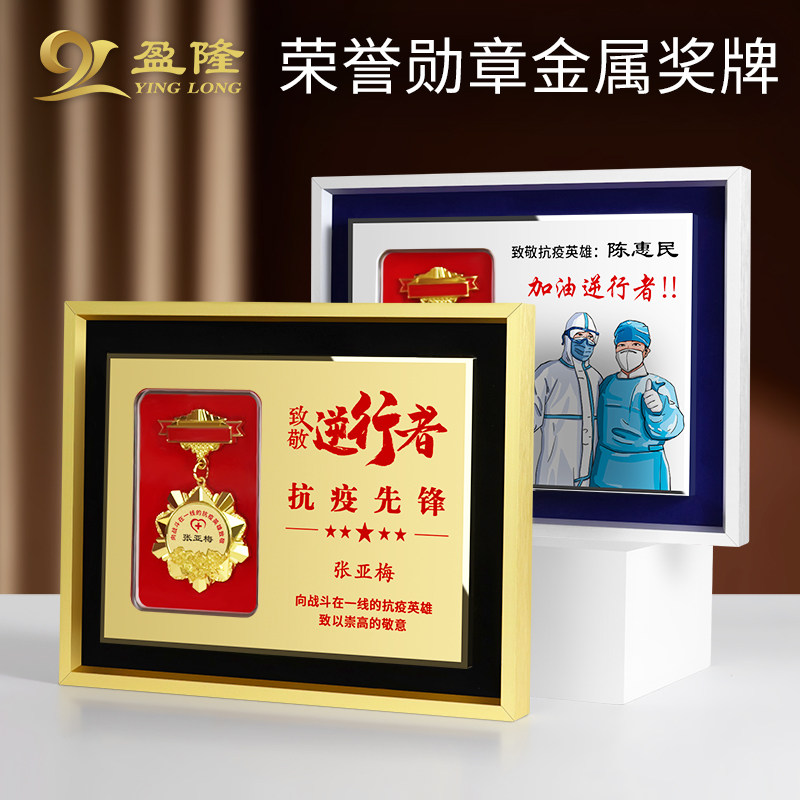 金属奖章定制抗疫奖牌定做纪念章勋章授权牌功勋牌匾挂牌奖杯徽章