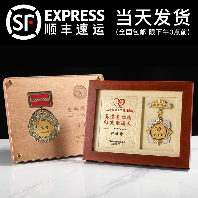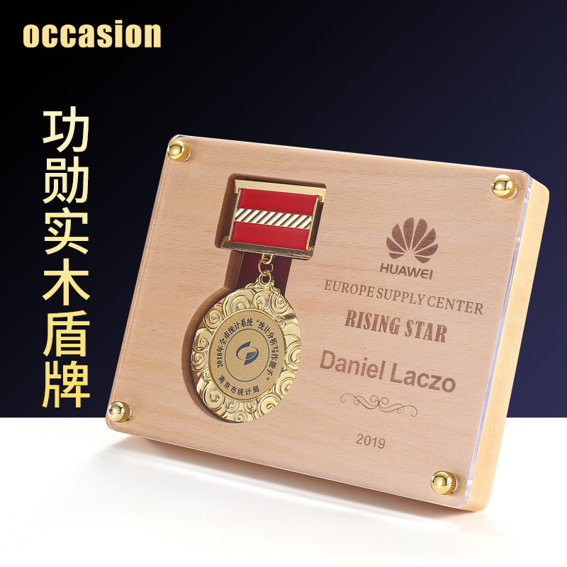 实木奖牌定制定做功勋章荣誉颁奖纪念章入职退休纪念品周年庆年会