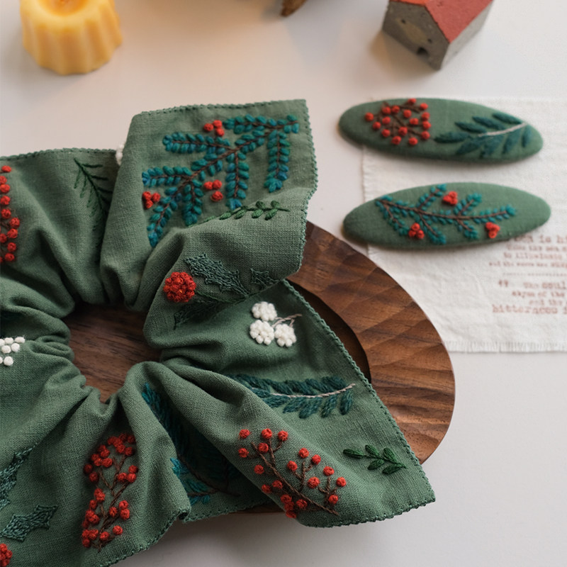 秋冬季diy手工刺绣方形大肠发圈扎头发橡皮筋布艺圣诞发夹材料包