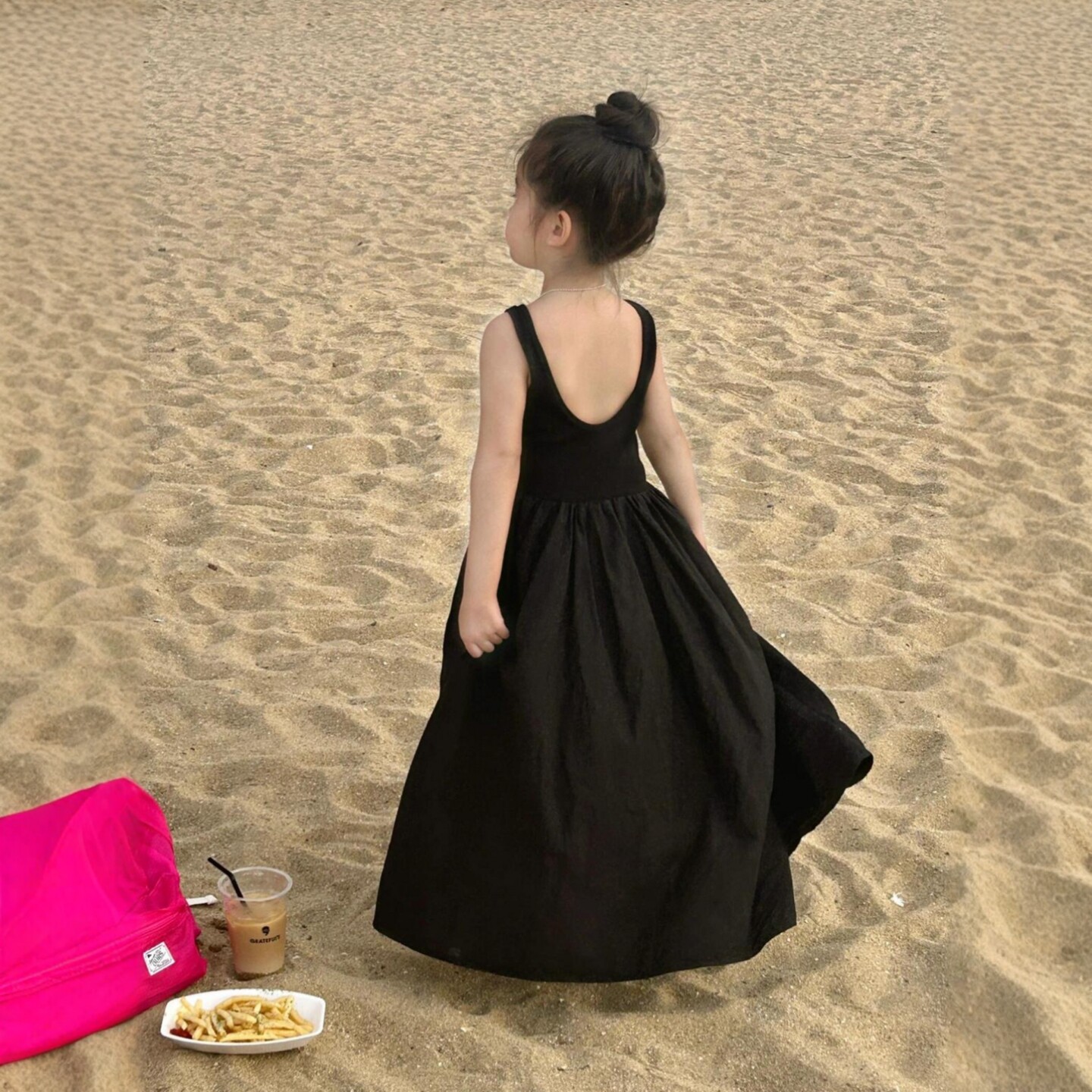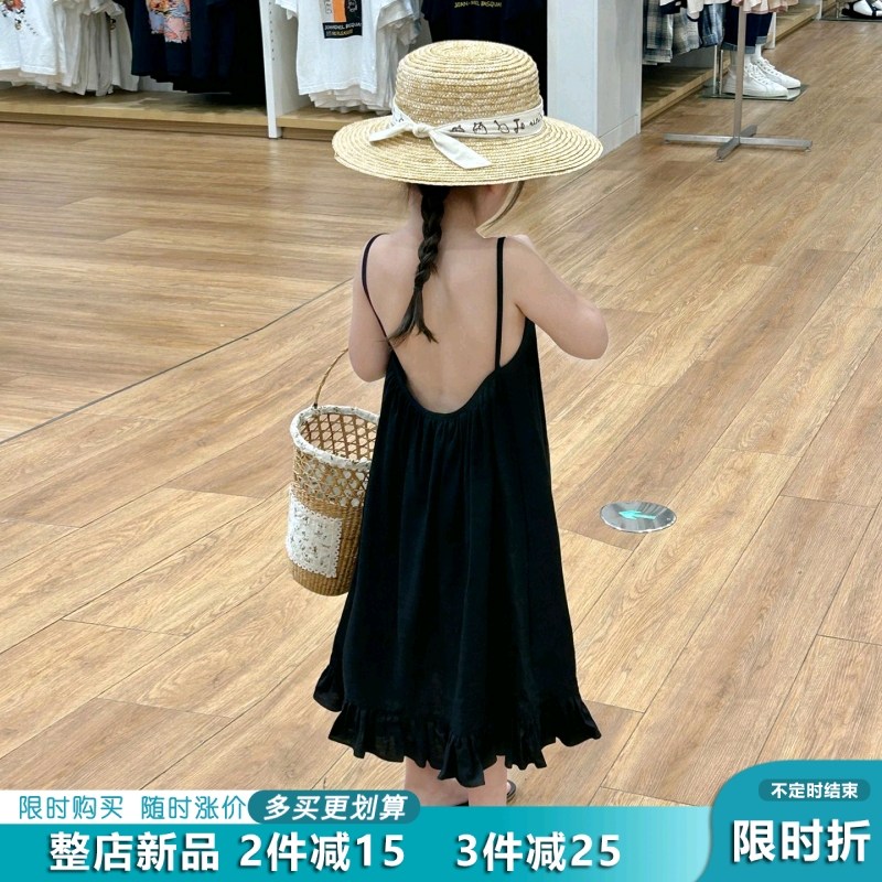 女童吊带连衣裙2026夏季新款儿童装黑色长裙时尚百搭沙滩度假凉感