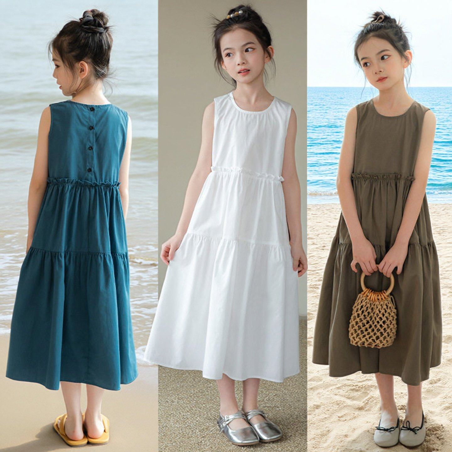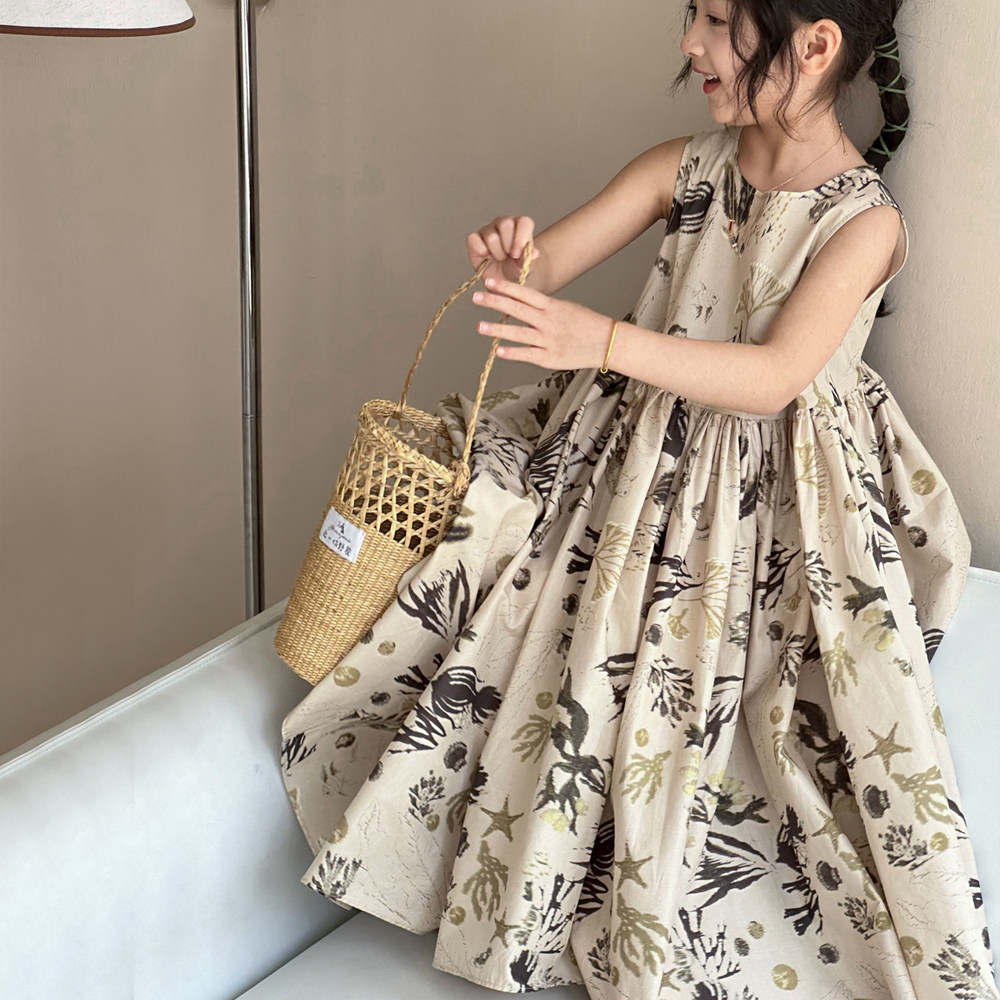2026夏季女童度假沙滩背心长裙新款女大童纯棉无袖宽松蛋糕连衣裙