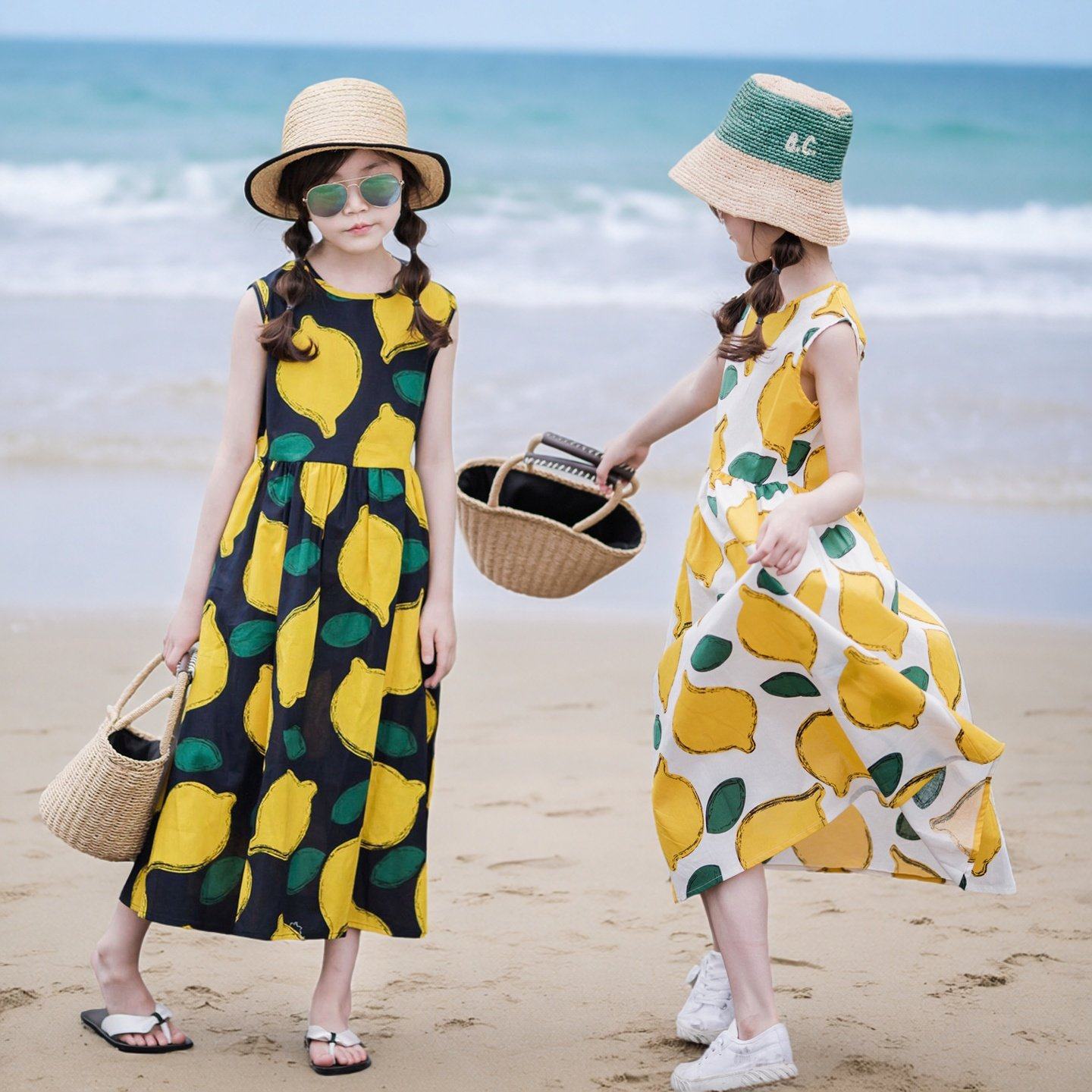 大童海边穿搭小清新连衣裙女童夏季度假儿童裙子纯棉沙滩过膝长裙