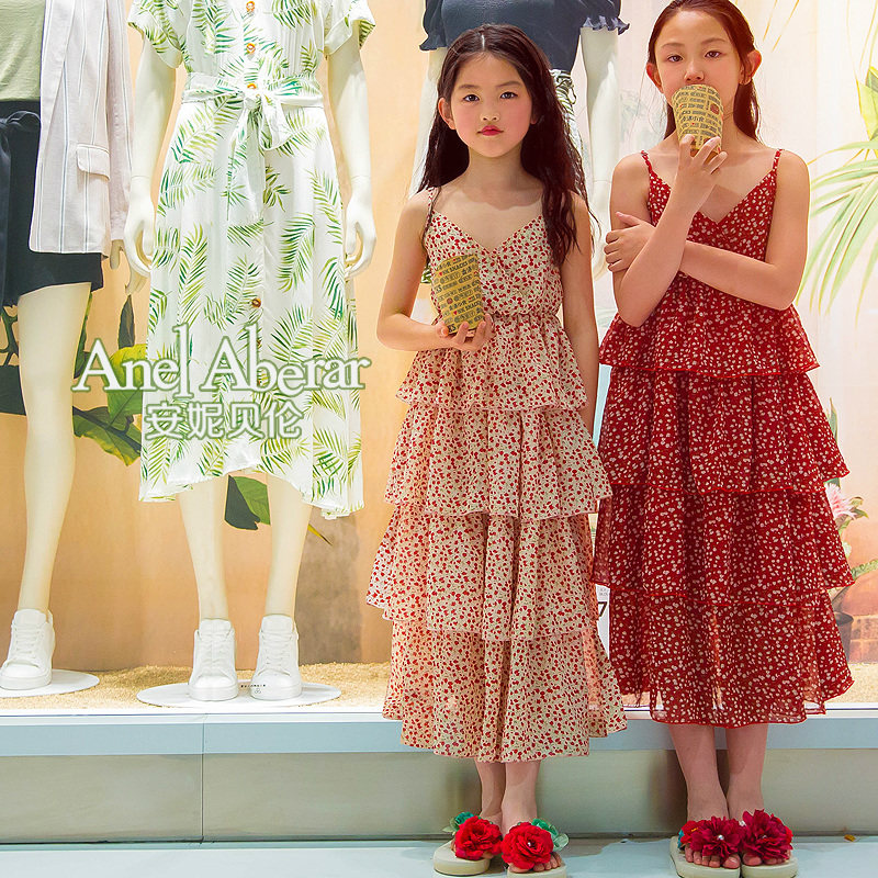 女童连衣裙2022新款雪纺长裙吊带碎花蛋糕裙中大童夏装亲子沙滩裙
