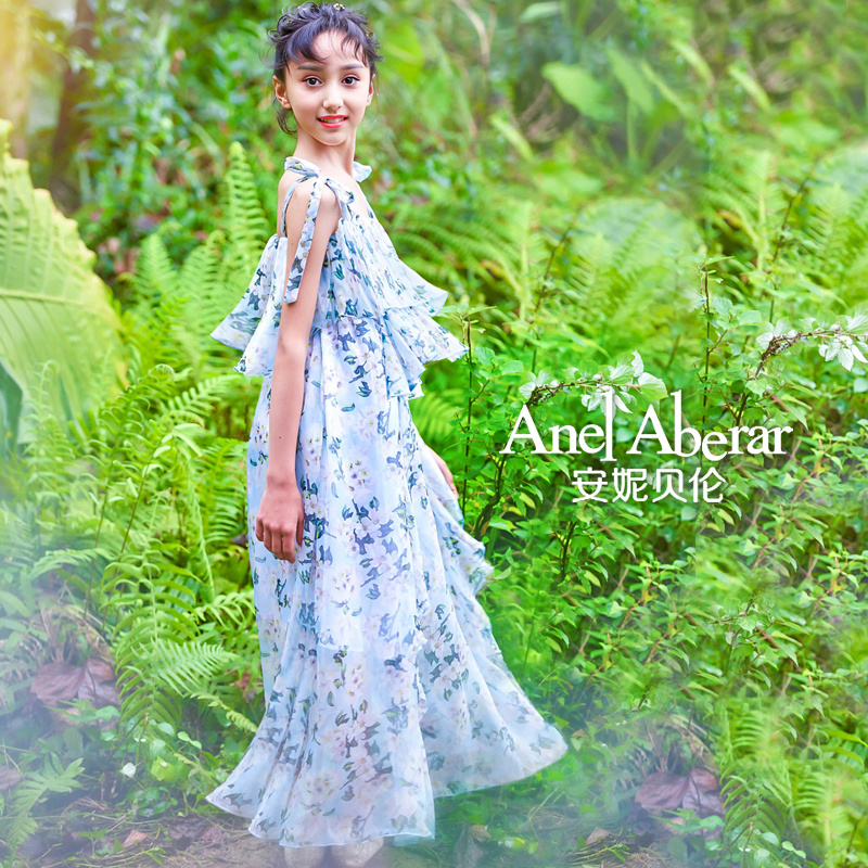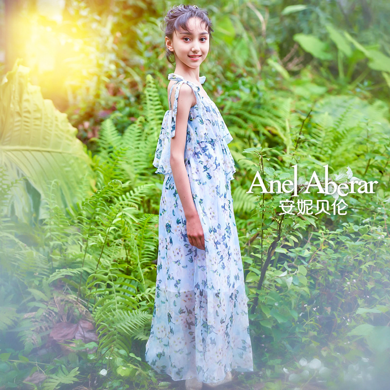女童连衣裙长款洋气夏装大童雪纺沙滩长裙A字裙度假休闲风背心裙