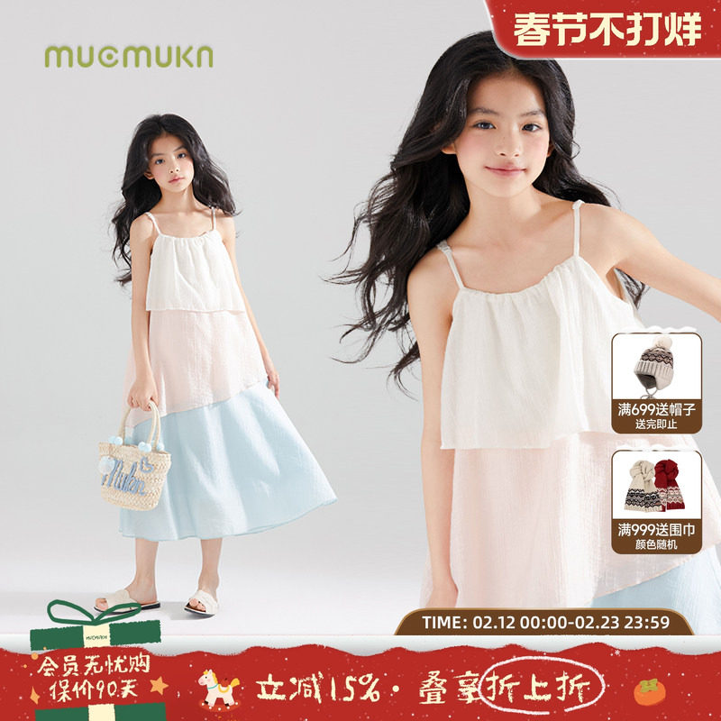 【三色冰淇淋】柔软天丝女童撞色吊带连衣裙儿童轻薄沙滩度假长裙